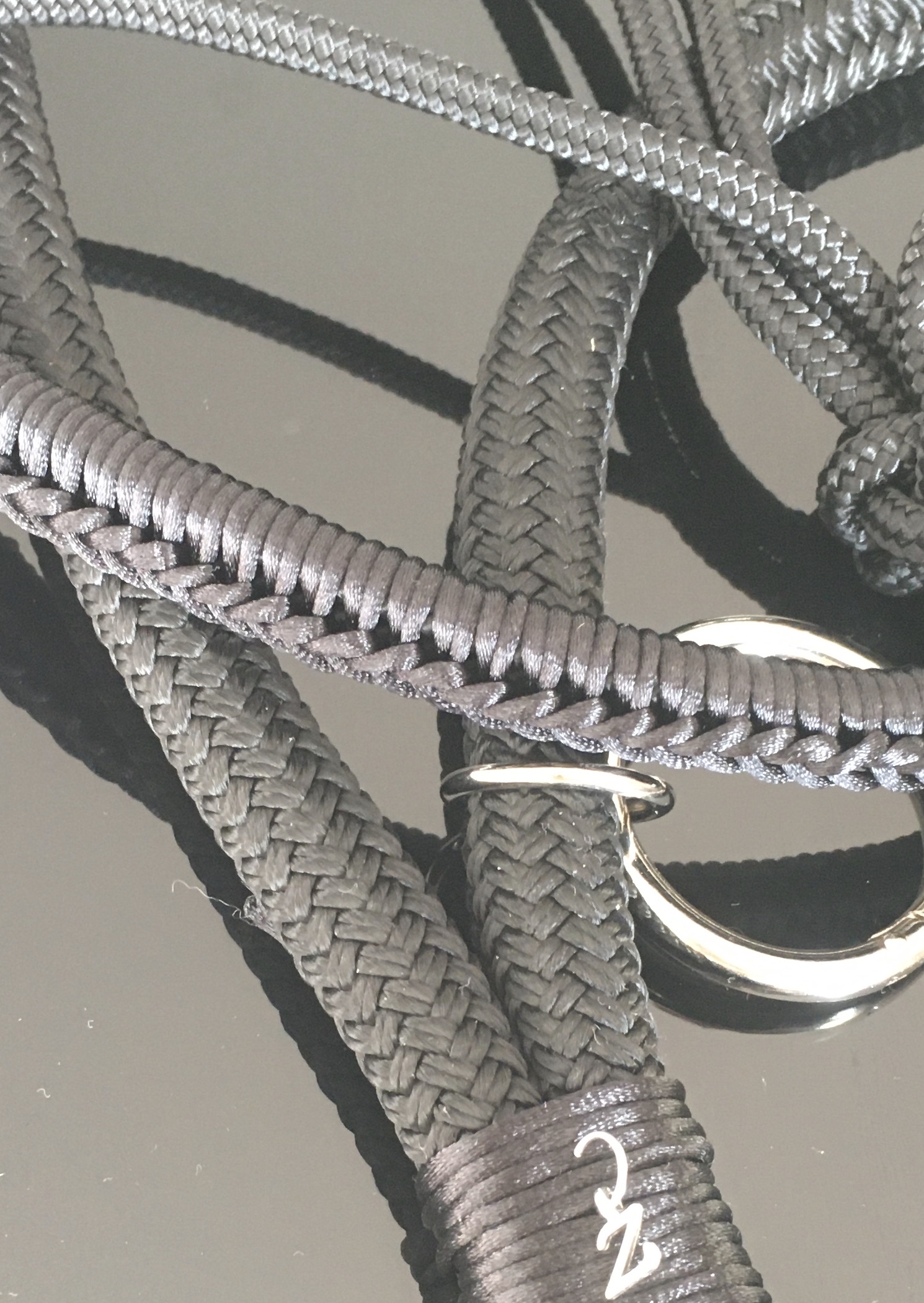 This set contains one neckrope with a personalized letter and a long lead rope plus a ropehalter all in black.